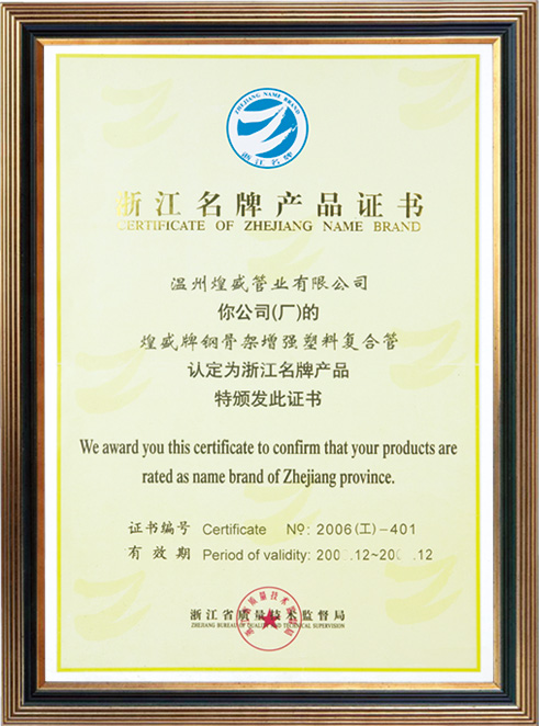 當前位置:集團首頁 - 關于煌盛 - 浙江名牌產品證書