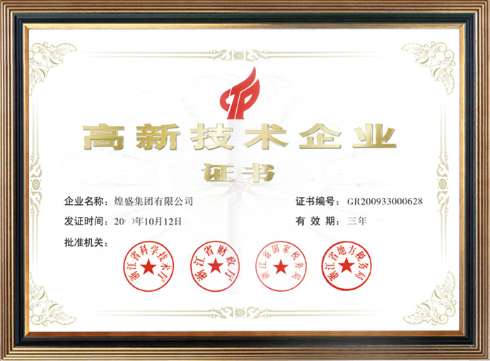當前位置:集團首頁 - 關于煌盛 - 高新技術企業證書