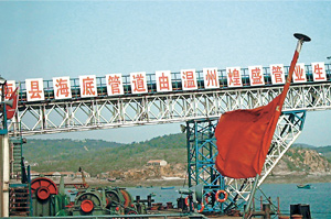 大長山島跨海引水工程是個由許多城市參與的項目:管材原料來自韓國,管材加工源自溫州,施工的是上海企業,工人則很多來自南方。在已經開工的兩個多月里,許多城市的勞動者在黃海海域唱響了"勞動者之歌"。