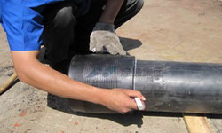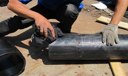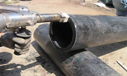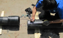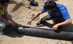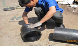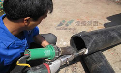 承插時先將管件套在管材的一端,稍緊時采用榔頭輕輕敲打而進。另一頭采用榔頭敲打或扶正器、手搖葫蘆(拉緊器)輔助承插到位。