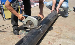 根據所需圖紙設計的長度尺寸,將管材截斷,管長應考慮管件的承插深度、管口打磨余量及增加上的封口環,端口與管材軸線垂直。