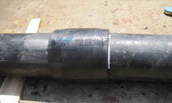 將扶正器的兩個卡環調到管材的適當位置,必須位于記號之后,以免抵住管件承插不到位,擰緊扶正器的卡環螺母,卡緊在管材上。
